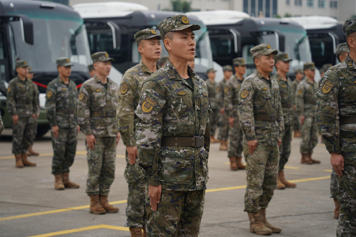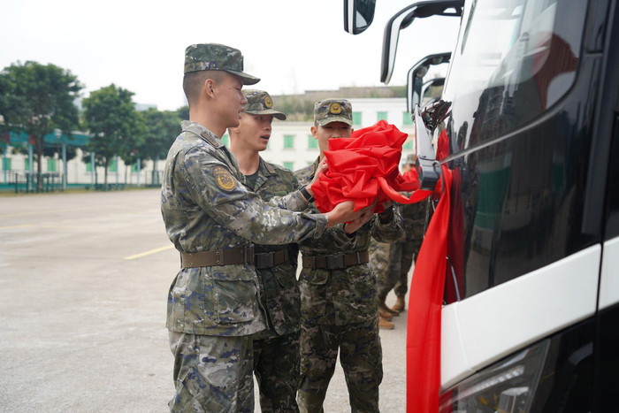 日前,武警广东总队机动支队组织授装仪式,向基层各单位授予一批新式车辆装备。授装现场,战车披红。数百名分队官兵整齐列阵,斗志昂扬,数十台战车蓄势待发。